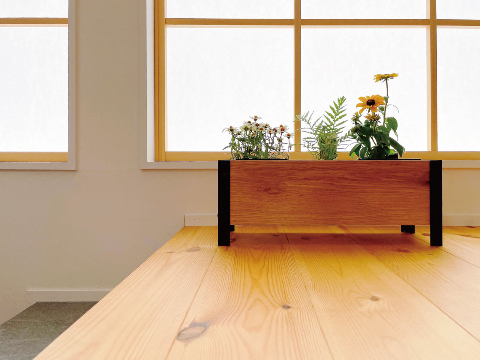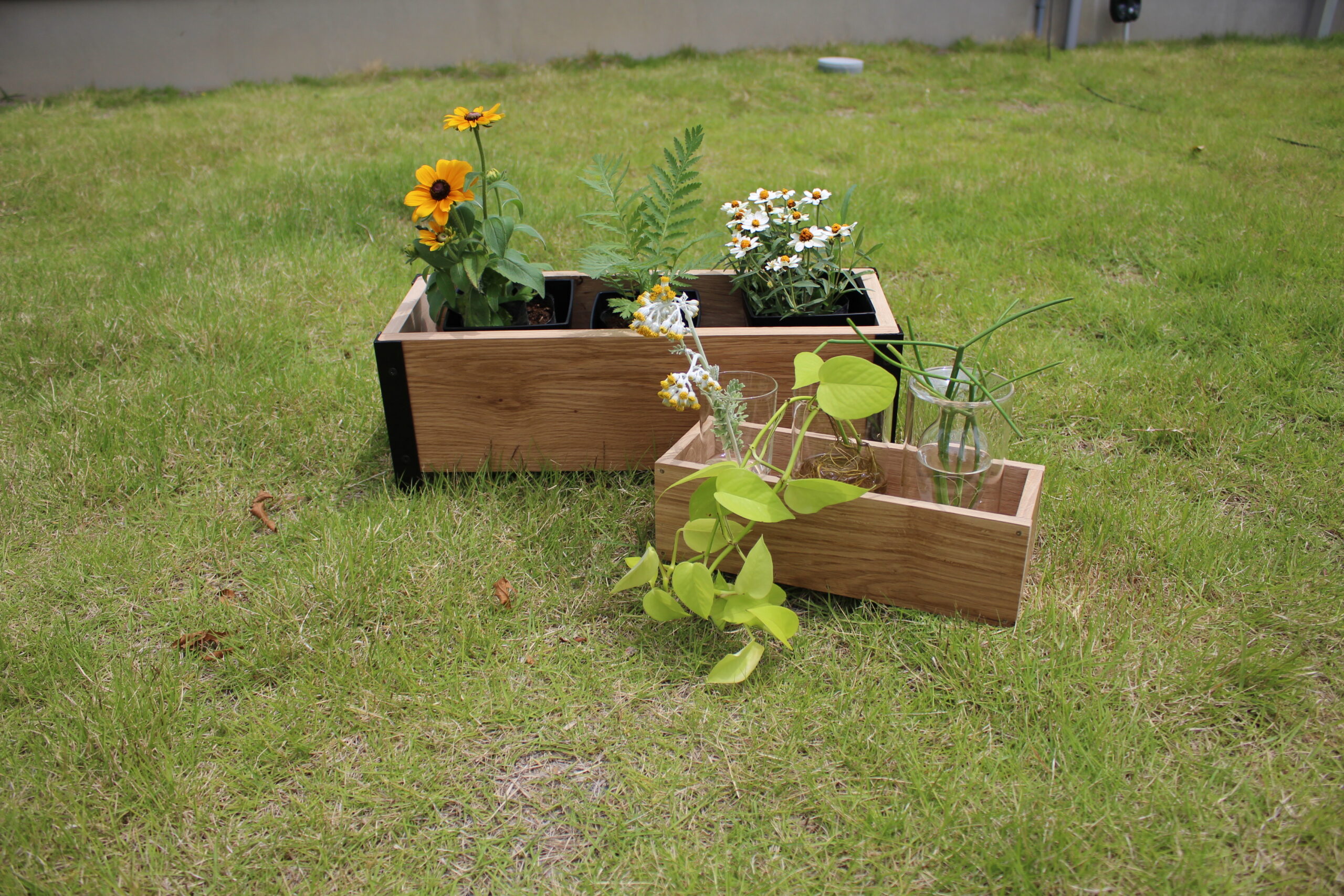 オーク材のプランターカバーは、様々な植物との相性も良く、