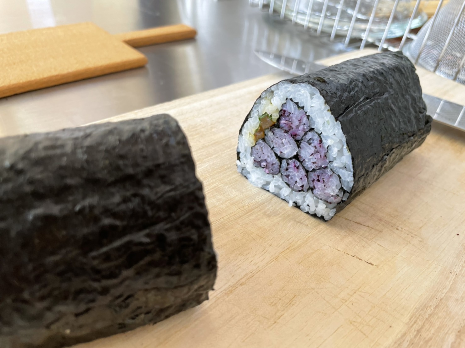 秋が旬の葡萄をイメージした太巻きは、切った際の感動がありますのでぜひ一緒に体験しましょう!